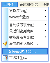 在打开的浏览器,位于顶部的《工具》,点击《Internet选项》。位置如下图所示:
